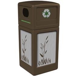 DCI MARKETING 746196299 42 GAL BROWN RECYCLING RECEPTACLE WITH STAINLESS STEEL CATTAIL PANELS